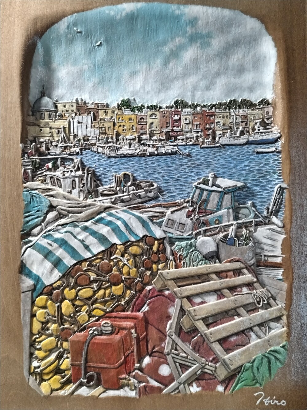 「パステルカラーの港町 Marina Grande プローチダ」42✕35cm